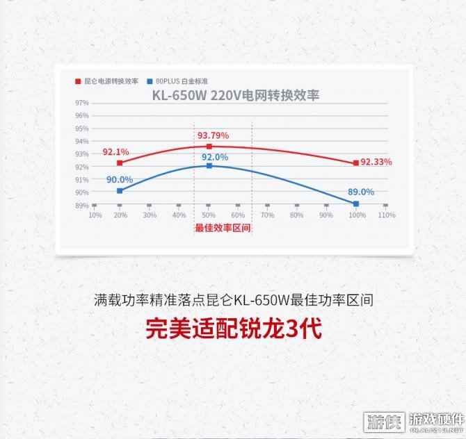 且此满载功率段完美落点于昆仑KL-650W的最佳功率区间,将纯正血液的LLC Pro白金全模架构威力展现得淋漓尽致。自GP系列电源为起点,此白金架构历经时间与经验汇聚的不断优化,是有效保证电源性能与品质的一大利器,昆仑KL-650W也凭此收获美国80PLUS白金牌认证。