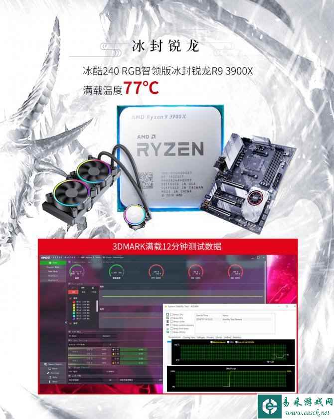在解决锐龙3代处理器的运行稳定性和散热问题上,昆仑KL-650W跟冰酷240水冷成为绝佳拍档。良好的温度控制加上优异的白金效能功率区间让锐龙3代处理器能够放纵豪情,将最极致的性能呈现到我们的眼前:昆仑山巅,冰封锐龙! |