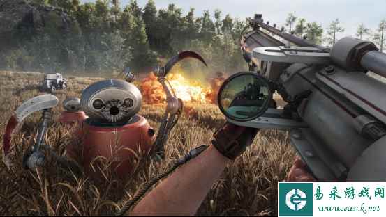 这款名为《原子之心》的游戏,以上世纪五十年代的苏联为背景,构建了一个生物与机器人技术高度发达的架空世界。在游戏里,鳞次栉比的未来主义建筑、简单明了的构成主义海报、强劲有力的“祖国母亲在召唤”雕像,以及在无名烈士墓的长明火前悼念战友的二战老兵,共同搭建了一个有别于传统的舞台环境。当然,为了让《原子之心》显得更加别具一格,大量的机器人和包括人在内的改造生物无疑是游戏里极为重要的部分。 而《原子之心》的故事也正是开始于一次失控事件,玩家所扮演的谢尔盖少校则奉命查出真相,溯本清源。当玩家带着复杂心情,踏足这个神奇的世界时,首先被吸引的一定是高耸入云的地标性建筑、井然有序的机器人,还有街道旁飘扬的红旗以及气球彩带。然而正当玩家沉浸在这份景致所带来的美好中时,机器人们却突然集体失控,开始疯狂的无差别攻击人类,霎时间街道上便堆满了着火的汽车,空气里弥漫着鲜血散发出的腥咸……