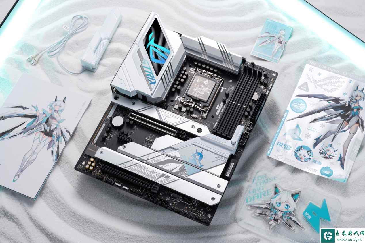 ROG STRIX猛禽Z790系列新主板采用全新ID设计,并在I/O盔甲上加入了RGB灯效,为玩家带来出众的视觉效果。其中,华硕Z790吹雪新主板身披银白色机能战甲,并巧妙融入虚拟代言人RO姬·雪武战姬靓丽剪影,次元浓度拉满。