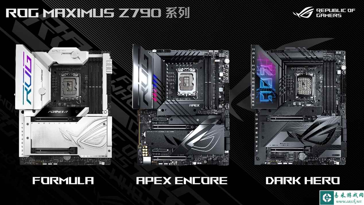 华硕Z790系列主板新品板载前置USB Type-C接口,不仅可提供20 Gbps高速传输,还支持QC4+或PD 3.0快充技术,便于玩家玩游戏时也可为连接移动设备(手机、平板电脑等)快速充电。同时,通过USB Wattage Watcher功能,帮助玩家实时了解设备的充电功率及快充状态。华硕Z790系列主板新品在追求效能提升的同时,也致力于Easy DIY和个性化特色的发展。通过显卡易拆键、M.2便捷卡扣、Q-LED故障诊断灯、Q-DIMM单面内存卡扣等,全方位提升用户的DIY装机体验。 信仰首选,梦幻神装——ROG玩家国度Z790系列新品 对于追求极限性能的玩家来说,ROG玩家国度系列主板显然是上佳之选。无可匹敌的性能、无出其右的创新功能和颠覆传统的美学设计,是玩家梦寐以求的终极信仰神器。此次,ROG玩家国度Z790系列共推出3款主板新品,分别为月耀白配色ROG MAXIMUS Z790 FORMULA、超频猛兽ROG MAXIMUS Z790 APEX ENCORE,以及黑武士ROG MAXIMUS Z790 DARK HERO。