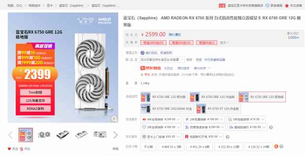 华硕利用转接卡将RTX 4090外挂在了这块RTX 4060 Ti显卡之上,二者共用一条主板插槽。该“创意”看起来很酷炫,然而两块显卡不能SLI,也不能共同计算,RTX 4060 Ti的系统通道也只有PCIe 4.0 x8,现在又被外挂的RTX 4090分走了一半,二者都被限制在PCIe 4.0 x4,虽然能点亮,但都是残血状态,比“吕布骑狗”还要暴殄天物的感觉。 虽然该种玩法并不实用,但也不失为一种“创意”想法,另一方面也证明了这块奇特的RTX 4060 Ti显卡不仅能装SSD,也能安装其他PCIe设备。 蓝宝石RX 6750 GRE 12GB D6极地版显卡 蓝宝石RX 6750 GRE 12GB D6 极地版显卡采用全白外观,蓝宝极地版白色工业设计,配合极简线条点缀,整体观感简约且时尚。 性能方面,出色的供电用料与不俗的硬件配置,再配合FSR 3或AFMF的加持,使得蓝宝石RX 6750 GRE 12GB D6 极地版显卡即便在2K分辨率高画质下,也能获得100 FPS左右的平均游戏帧数,可以给予玩家丝般顺滑的游戏体验。