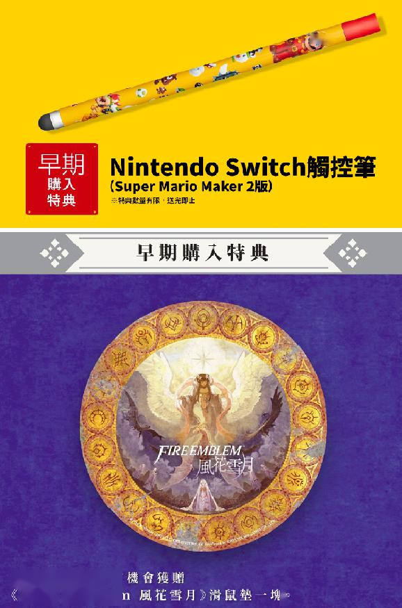 店铺特典顾名思义是你去线下实体店购买游戏时能领取的礼品,大多为独立包装的小物件,赠完即止。比如《火焰纹章风花雪月》送的鼠标垫,《马力欧制造2》附赠的触控笔,有时候不同的店铺还提供完全不同的特典。