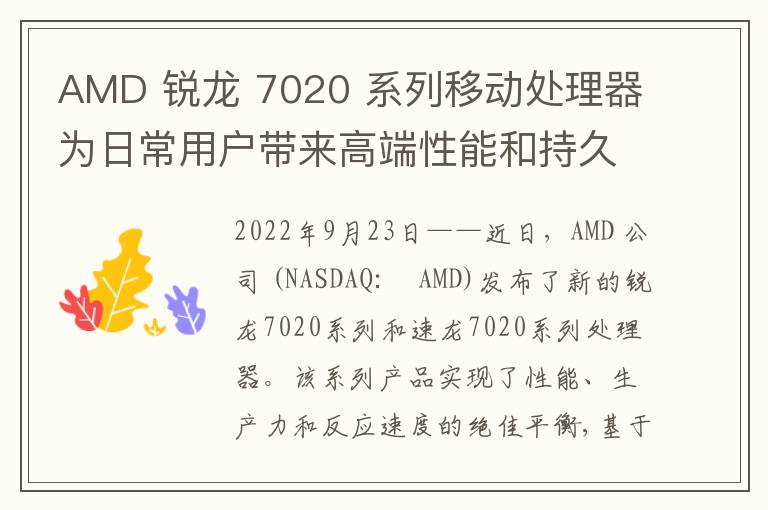 2022年9月23日——近日,AMD 公司 (NASDAQ: AMD)发布了新的锐龙7020系列和速龙7020系列处理器。该系列产品实...