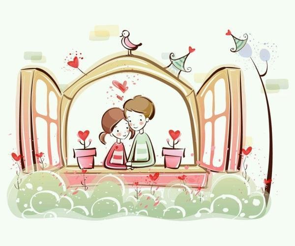 一组可爱的卡通情侣聊天背景图片 给我手带你走11