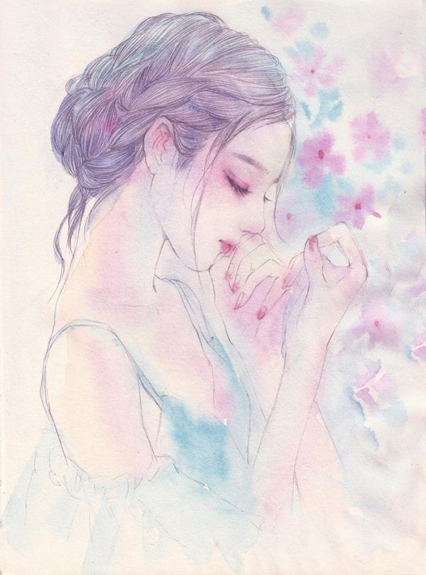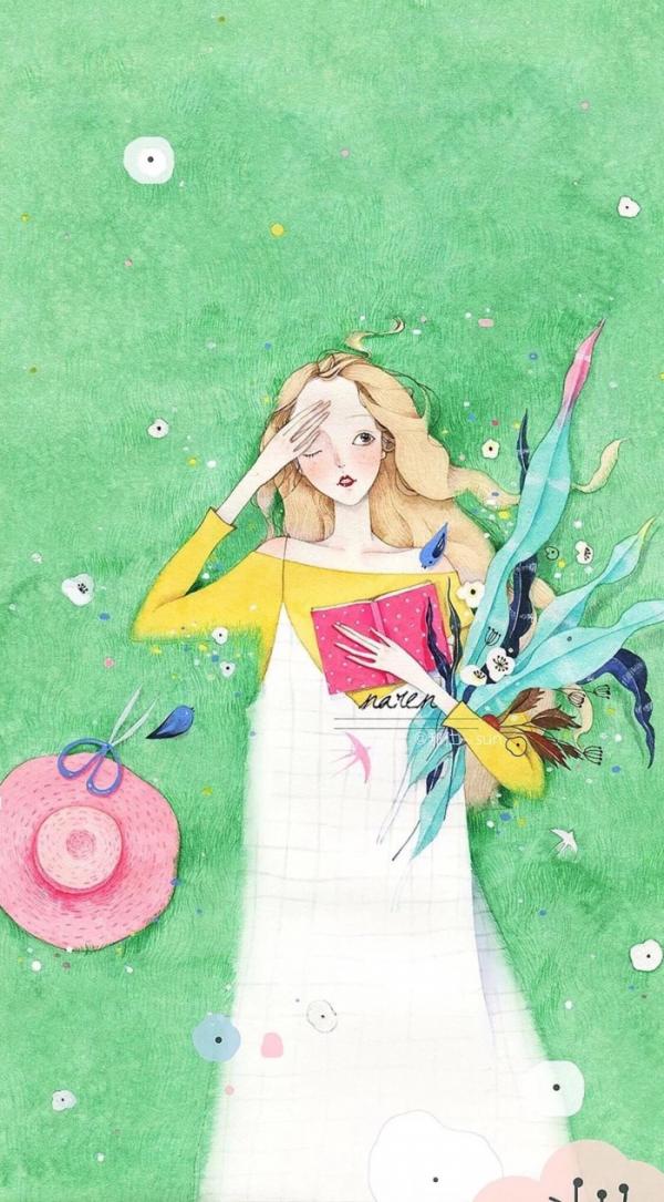 森系插画手绘图片女生 半城烟沙﹉盛夏9