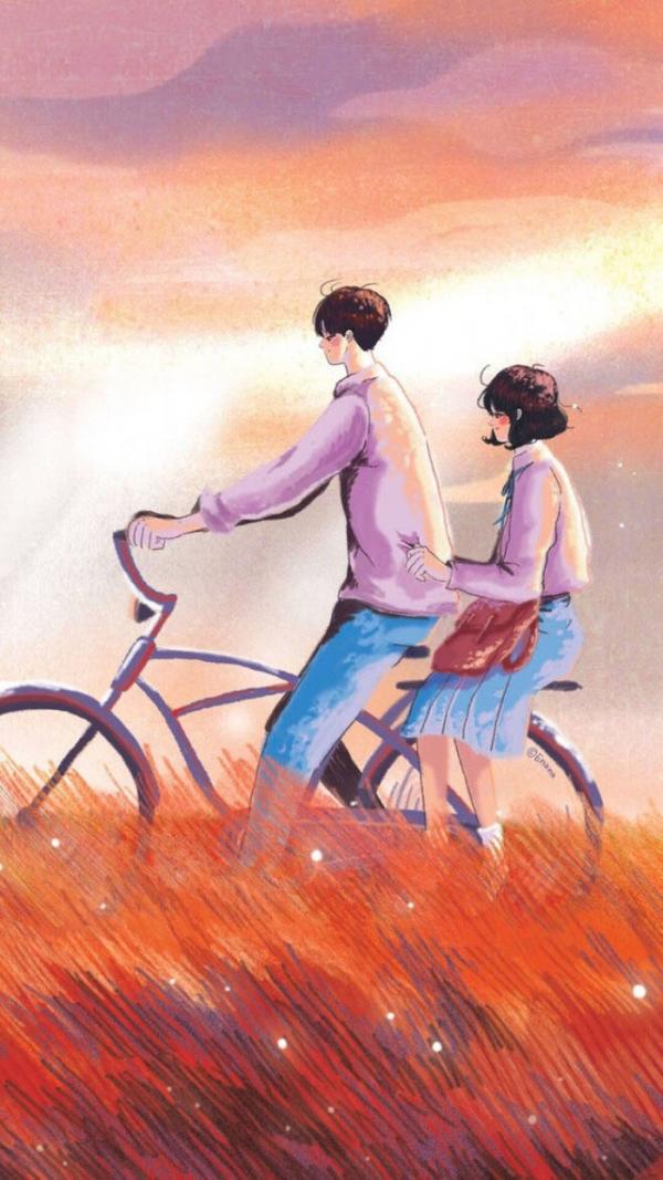 唯美的情侣插画手绘图片 陪你走过四季14