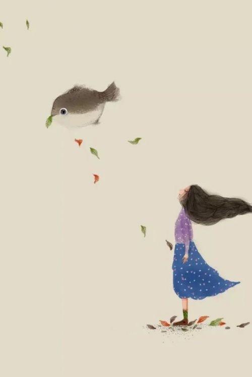 文艺简约的卡通插画图片 趁微风不噪 趁你未老10
