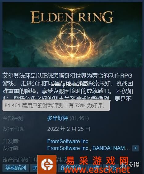 除了优化 其他都顶!《老头环》Steam好评率涨至73%