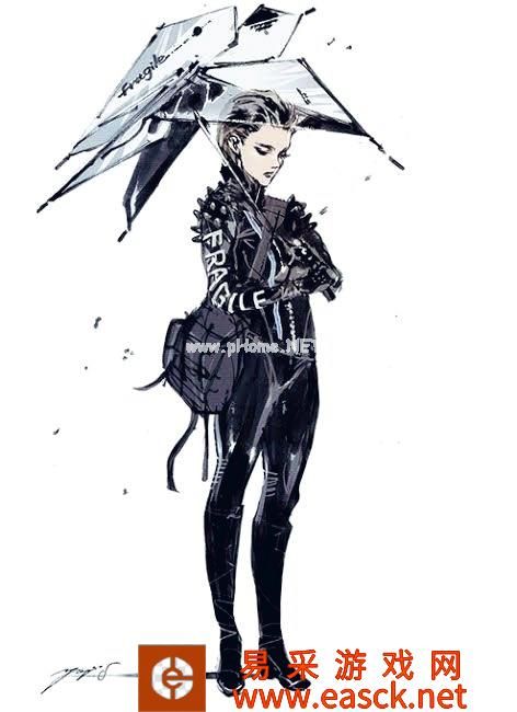 小岛秀夫表示,芙拉吉尔当初原本设定是骑着摩托的,其“机车骑士”风格的皮衣就是印象的残留,这是为了更加活用伞和包的《欢乐满人间》(美国歌舞电影)风格而做出的改变。另外肩膀上的突刺以及蓝色条纹是为了加强印象之后加上去的。而伞的设定来自被强风摧残后的被丢弃的塑料破伞形象。