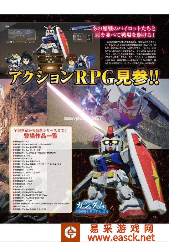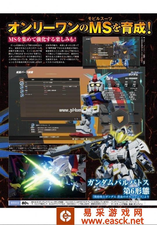 本月直面会上首次对外公开的《SD高达 激斗同盟》日前在《FAMI通》杂志上刊登了游戏的最新情报。该媒体展示了本作中登场的作品列表,同时也对游戏的开发完成度进行了公开,下面就一起来了解一下吧。 首先,《FAMI通》杂志确认《SD高达 激斗同盟》支持1-3人游戏,本作的开发完成度已经达到80%。游戏流程方面,主要是以进行任务、对机体进行强化、进行剧情,然后再次进行任务的模式。