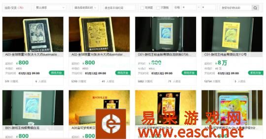 与之一同拍卖的,还有游戏王纯银青眼白龙卡、游戏王铂金青眼白龙卡、全球限量16张决斗大师duelmaster地区赛冠军金卡、多款宝可梦卡牌、皇马限量球衣、科比-布莱恩特签名等物品。这类拍品的共同点是,起拍价都为800元。