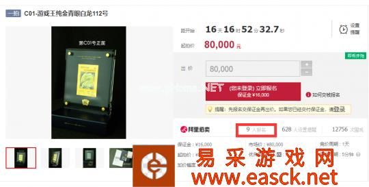 参与此次司法拍卖的物品包括:限量版的PS主机、镀金镀钻的游戏手柄、绝版Switch等。其中最受网友们关注的,莫过于起拍价只有80元的游戏王青眼白龙金卡。秉着凑热闹的心态,上万人参与了竞价。