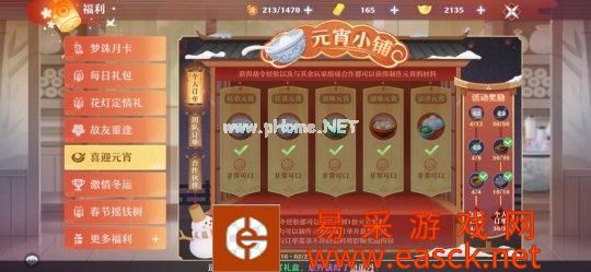 和最爱的那个她/他一起燃放烟花 亮点二:元宵小铺欢乐开张营业! 东风夜放花千树,更吹落,星如雨。如果说情人节活动需要两人相伴参与,那“单身狗”玩家可不乐意了,没有对象怎么办呀?不用着急,元宵节活动一个人也可以拿到满满当当的奖励!