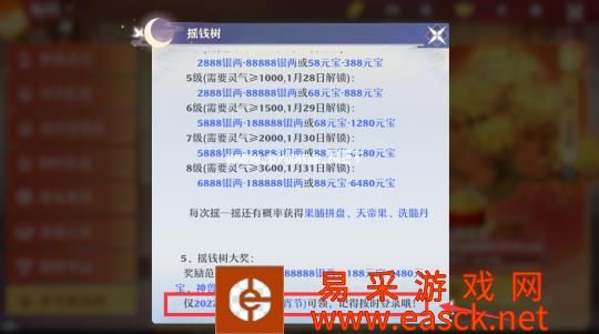 最后一个要提醒大家的是,2月15日元宵节这一天,我们春节期间用心栽培的“春节摇钱树”,已经汇聚满了天地灵气,登录即有机会开出终极大奖——6480元宝或神兽寅虎哦! 小结: 华灯逢元夜,今宵共团圆!《梦幻新诛仙》情人节、元宵节活动更新,无论是点燃花灯遥寄相思,还是亲朋好友团圆相聚,抑或是与心爱的TA双宿双飞,在游戏中都能感受到浓浓的节日气氛,赶紧去体验一下吧~