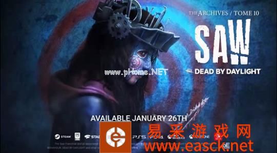 《黎明杀机》联动狮门影业著名IP《电锯惊魂》,推出:古书第10册:竖锯。其中包含新皮肤、新挑战、新《电锯惊魂》主题护符。