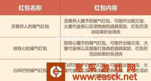 除夕守岁奖励更是丰厚,当天道友们只要在线就能获得大量的经验或道行奖励了!若在零点整完成守岁可获得6倍奖励!在线达到一定时长还能获得抽奖机会,次数还可以累积,在获得结束后,可以用奖励次数兑换除夕守岁大礼,若零点整在线则可以额外获得6次奖励机会!有30次的奖励机会则会额外获得道具奖励!身穿金狮贺岁时装或锦狮呈祥时装、轩辕战魂(传奇)套装(仅公测版),则有机会获得翻倍奖励。悄悄告诉道友,在问道口袋版挂机也可计算在线哦! 参与以上的五项活动都可以获得新年福气,使用新年福气可在天墉城的“灵兽异人”“段铁心”“白邦芒”处花费500点福气值兑换不同的福气红包;福气红包可能开出银元宝、大量代金券以及不同种类的道具奖励,同时也可以使用新年福气在“神算子”处花费25点福气值兑换低阶道行书。
