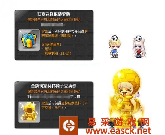 游戏点数累积到1500时,可获得联赛选择服装套装,累积到3000时可获得金牌玩家奖杯椅子交换券!