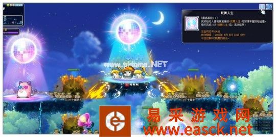 成为大明星之——炫舞人生! 专题上线后至4月5日,点击左侧星星处接取[冒险岛互动播]冒险岛直播-炫舞人生任务,消灭等级范围内怪物500个,将会有特别客人花蘑菇、伽马欧米伽、休彼德啦和超级巨星品克缤出场,开启炫舞人生时刻!这些人会随着镜面球起舞,每当镜面球发出璀璨光芒时,就可以获得丰富的经验值!同时镜面球周围的怪物还会收到攻击!*每天最多可以参加10次炫舞人生活动。