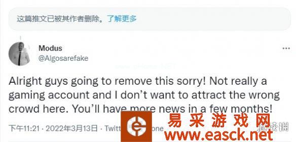 不过,昨日Modus将推文删除,表示自己不是专业爆料游戏消息的账户,不想吸引想关注这些的人。几个月之后你自然会解更多的《星空》消息。