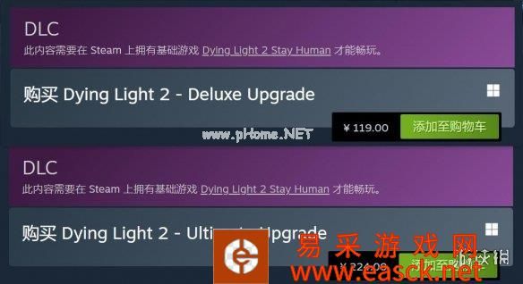 目前豪华版升级包Steam售价119元,终极版升级包为224元。升级包主要是为已经拥有标准版的玩家推出的,如果还没有购买《消逝的光芒2》标准版,则直接购买豪华版或终极版还更划算一点。