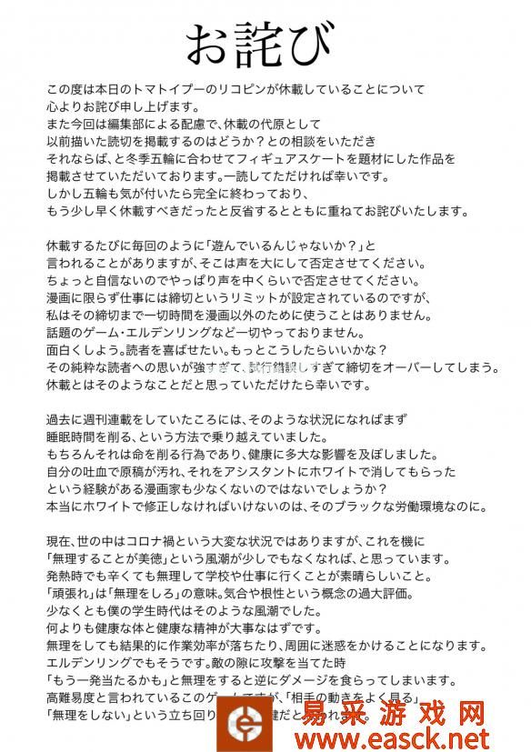 面对《老头环》口嫌体正直?漫画家假正经休刊引热议