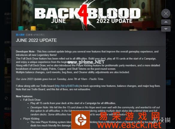 《喋血复仇》自发售起就标榜《求生之路》精神续作,但因为过高的售价、不合理的难度曲线以及不开放创意工坊等原因,遭到粉丝们的唾弃。今日,官推宣布重大更新上线,感兴趣的小伙伴们来看看吧。 《喋血复仇》因为上述这些问题,绝对可以被评为2021年最令人失望的游戏之一,截止发文该游戏在Steam口碑褒贬不一仅获64%好评。 但仍然有不少玩家认为它是一款优秀的射击游戏,鉴于粉丝们的支持,开发商Turtle Rock Studios仍在尽其所能将该游戏翻新。今日官推宣布,6月重大更新正式上线。 此前,不少玩家抱怨游戏中负面游戏玩家过多,导致了糟糕的游戏体验。这次的更新,开发商兑现了承诺,现在玩家可以在游戏中投票踢出挂机和故意伤害队友的玩家。 Turtle Rock Studios还增强了不少卡牌的作用,显著降低游戏难度。此外还对游戏bug进行修复以及优化,感兴趣的玩家可以点击此处查阅详细更新列表。不过时至今日,开发商仍然没有公开创意工坊的想法。 |