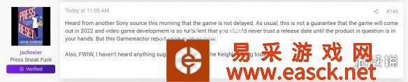 Jason Schreier表示,他从又一位索尼内部人士那里听说:《战神5》没有延期。而且昨天已经有2个人向他透露《战神5》没跳票到2023年。他认为Gamereactor关于《战神5》跳票到2023年的消息应该是假的。不过他也指出:游戏开发本身充满了变数,有很多不可控因素,所以在游戏真正拿到手里之前,发售日期都是有可能改变的。
