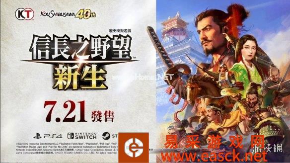 《信长之野望:新生》将于7月21日登陆PS4、Switch和PC平台,支持中文。