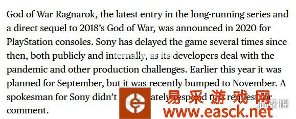 自从《战神:诸神黄昏》在去年索尼发布会上公布2022年发布后,至今没有更多有关发售日期的官方消息。据彭博社知名记者Jason Schreier表示,本作原定于9月发售,但现已被推至11月,发售窗口依旧在2022年内。