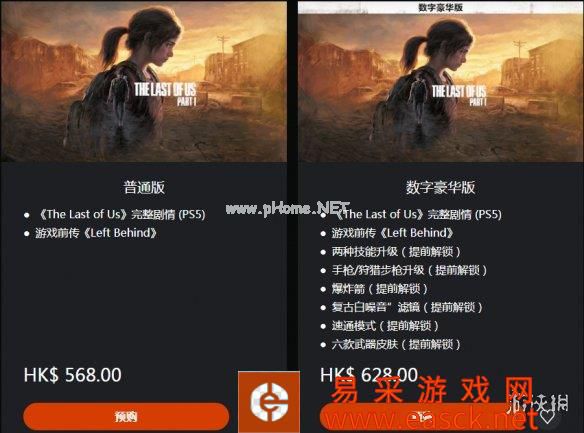 《最后生还者 重制版》(又名美国末日)已上架PS Store并开放预购,新增简体中文,9月2日正式解锁。普通版售价为568港元,豪华版售价为628港元,预购特典为补充品奖励和武器零件奖励。