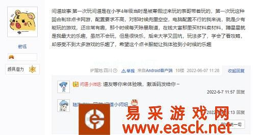 坏坏的小森:08年,小学5/6年级那会,第一次去网吧,然后接触了人生中第一款网游就是问道,家里没有电脑,有时间就去网吧练号做日常升级,那时候认识了好多网吧里常玩的人,然后就一起在一个区玩。虽然没有队友,但是自己需要过任务时,网吧里的人也会主动问要不要帮忙,真的有爱。后来级别越来越高,70级,整了一套发光套,属性很垃圾,只为了发光,还花6000万整了一只3天机体雨兽。现在想起来真的不容易,每次只有去网吧才能做任务升级,那时候升级难,当时升到70级真的花了好多精力。再后来,因为我的账号密码是一样的,被别人盗了,扒了一件不剩,当时游戏里和我结婚的女水,后来也离婚了。最后得知盗我号的人是之前在网吧认识的一个人,那时我十几岁,他已经二十多了,我也打不过他,哎,就先写到这吧,现在我长大了,还是会有事没事玩玩问道,问道在我心里不仅仅是一个回合制网游那么简单,我玩的是问道,问道有我曾经的青春。