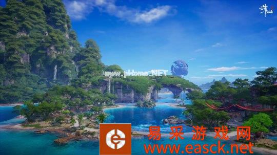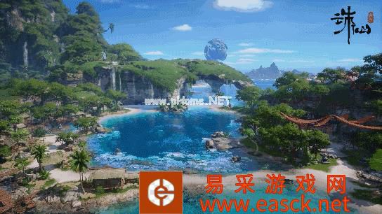 合欢球体移动设计 我们在图片中看到的这个“球体”,这是合欢门派的所在地。据官方消息,球形山采用实时同步加载技术,使球体在流浪海域的不同位置出现,有时升空,有时落入海中。这个实时变化的球给人一种“海上生明月”的神秘感。
