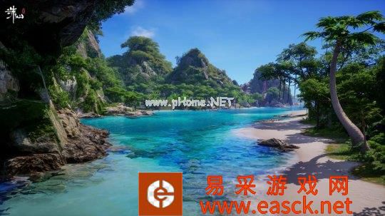 流波山场景 接下来是合欢门派的场景地图设计。在此之前,流浪场景的截图已经正式发布。我们可能知道这是一张海洋岛屿地图,那么如何让月光下的仙山更加沉浸呢?艺术选择了一种“现实中有迹可循的仙境”——