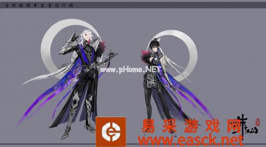 男女合欢校服以紫色和黑色为主色突出了“暗影”、“月影”的效果,在“月”元素的诠释上,官方将银色、白色加入到了合欢的服饰色系中,再辅以皮革绑带、披风,贴身紧身的布衫,以及交领、腰封,四肢金属轻甲等设计元素,让整体视觉更加民族化。 正如我们前面所说,《朱仙世界》的每个门派都有自己的专属神兽,合欢的专属神兽是“比翼鸟”,因此,可以看出,主美们在合欢服饰中融入了翅鸟元素、斗篷、盔甲和图案,都有翅鸟的羽毛、翅膀、喙和爪子。
