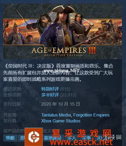 《帝国时代3:决定版》新史低29.7元,《四海兄弟:最新史低48元.65元,96号公路新史低34.新史低54元98元,加油站大亨.6元,《绝世情圣》新史低12元.47元等。今天来看看。“Steam每日特惠”推荐游戏! 《帝国时代3:决定版》 原价99元,现价29元.7元 |