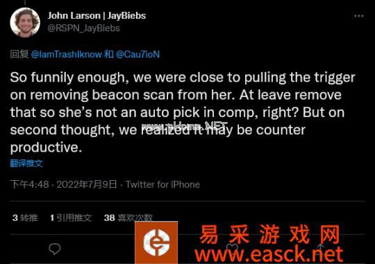 对此,Larson 在另一条推文中说:“有趣的是,我们几乎决定了在冲瓦尔基里能力中删除信标扫描的能力。至少删除这种能力,她不会是排名模式的必选角色,不是吗?但经过仔细思考,我们意识到这可能会适得其反。”他继续说:“团队指挥选择瓦尔基里(终极技能) 直布罗陀 扫描侦察。因此,我们认为我们应该重新制作,让团队组合支出更多的角色多样性。”
