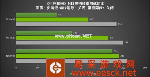 再来看看开光追下的开光。NIS打开测试数据比较时,打开测试数据NIS图形增强性能文件后,游戏可以跑到更流畅的水平,可见RTX 3070 Ti在《生死轮回》中运行2K和1080P没有压力,4K打开DLSS或者是NIS技术性能档仍能顺利运行。 NVIDIA Reflex