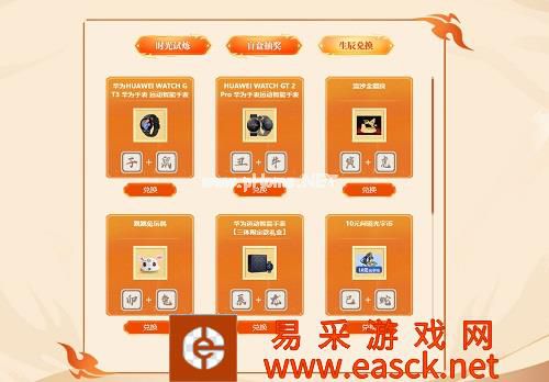 此外,使用指定的时间卡 生肖卡组合可以兑换相应的奖品,华为手表,问道定制,游戏虚拟道具:时尚·十年一梦,威威虎动态称谓/动态彩框/动态铭牌/动态团队标准等。,奖品数量有限,每人只能兑换一次。道教朋友赶紧选自己喜欢的奖品,手慢就没了!