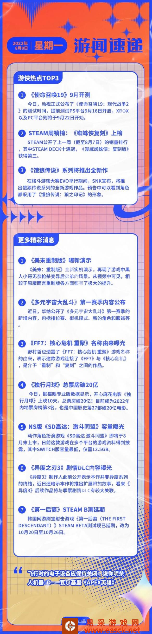 游侠早报:《COD19》9月开测 《饿狼传说》将推新作