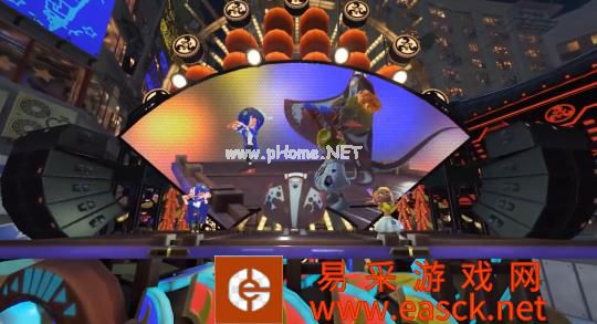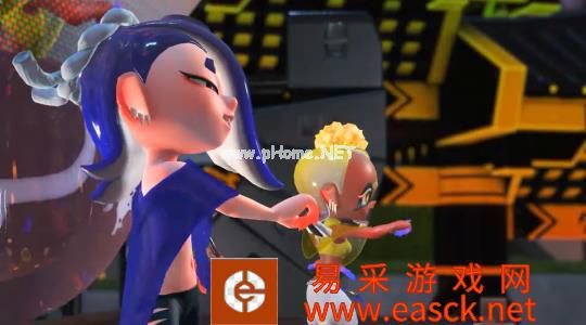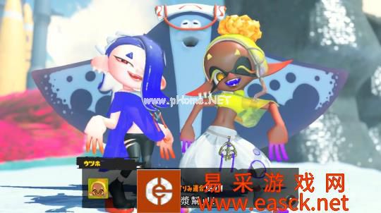 最后,自然是我们的喷射3偶像曼曼和莎莎了,这个自称鱼浆帮的二人组(加一只鳐)就是本作的新闻播报员了。说起来老游条最喜欢的还是喷喷2的偶像组合,这一代虽然音乐与舞台演出依然很炸裂,但这个大背头怎么看都有点不太适应啊!不过游戏开场的新闻播报的新增了变化,不再强制玩家观看,而是变成了广场广播,这个设定是真的爱了。