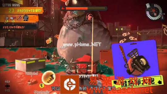 打工模式的新增内容就比较有意思了,过去直面会提到的“丢”鱼丸功能这里就不多说了,这次关注点在于各种各样的新增boss,所拥有的技能各不相同,在打工即将结束之时,还会出现超大的鲑鱼头目“横纲”,同时玩家也会解锁新的攻击手段,不得不说打大型怪兽这种体验还是很刺激的。