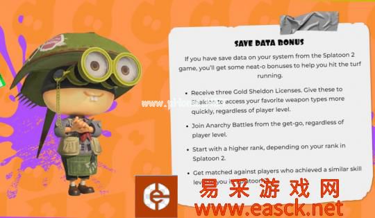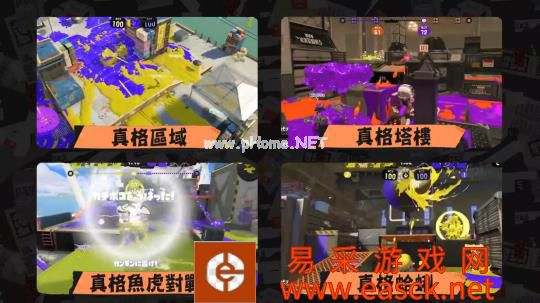 本作中的游玩模式更加多样化了,除了比较常规的涂地胜负之外,还可以选择真格模式一决高下,争夺中间区域的真格区域、把塔楼运到终点的真格塔楼、把鱼虎运到终点的真格鱼虎、收集蛤蜊丢向终点的真格蛤蜊,四种玩法相互轮换,依旧能够四人联机游玩。如果你有2代的存档,那当然也是有额外福利的,首先如果2代玩家玩真格模式没有等级要求,并且一开始会有更高的段位,该段位会由二代的段位决定,并且初始阶段你排到的对手也是跟你一个段位的。
