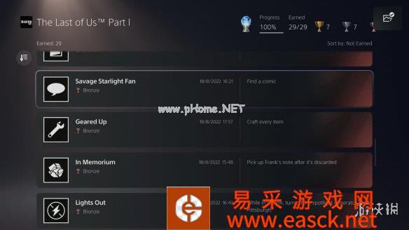 不再费时费力 《最后生还者:重制版》PS5奖杯列表泄露