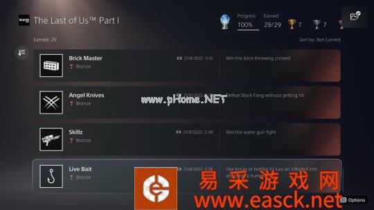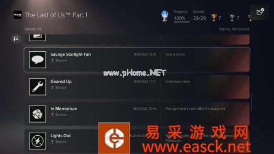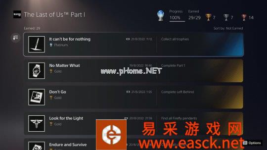 《最后的生还者》PS5重制版奖杯曝光 移除了难度和新游戏+奖杯