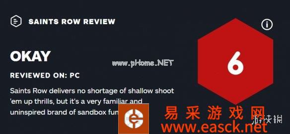 《黑道圣徒》重启作全球媒体评分现已解禁,M站均分63,截止至本稿发出时收录43家媒体,知名媒体这边:IGN 6分、GameSpot 6分 、Gameinformer 8.5分。大多媒体反映游戏目前没啥新意、缺乏乐趣且bug较多。