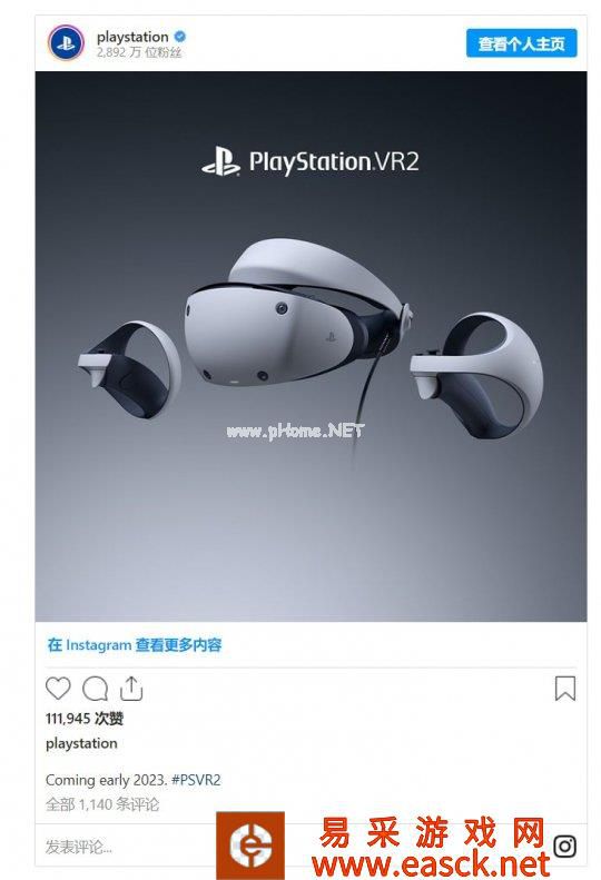 索尼宣布PSVR2将于2023年初发售。当地时间周一,索尼在社交媒体上公布了这一消息。
