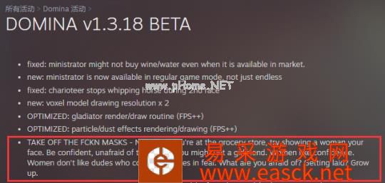 《Domina》发布于2017年,算是一款持续更新多年的老游戏了,虽然没有汉化,但在国内依然有着相当一部分玩家。可是在今年年初,《Domina》的开发商开始在更新日志中发表一些个人极其主观的看法,这引来了玩家们的不适。