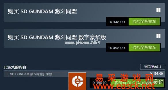 《SD高达:激斗同盟》国区售价348元,数字豪华版售价498元(包含季票),季票单独售价198元,首发并无折扣优惠。
