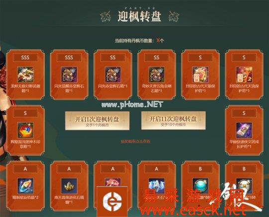 玩家在活动中所获得的丹枫币,还可以在“迎枫转盘”中使用,有机会赢得更多奖励。